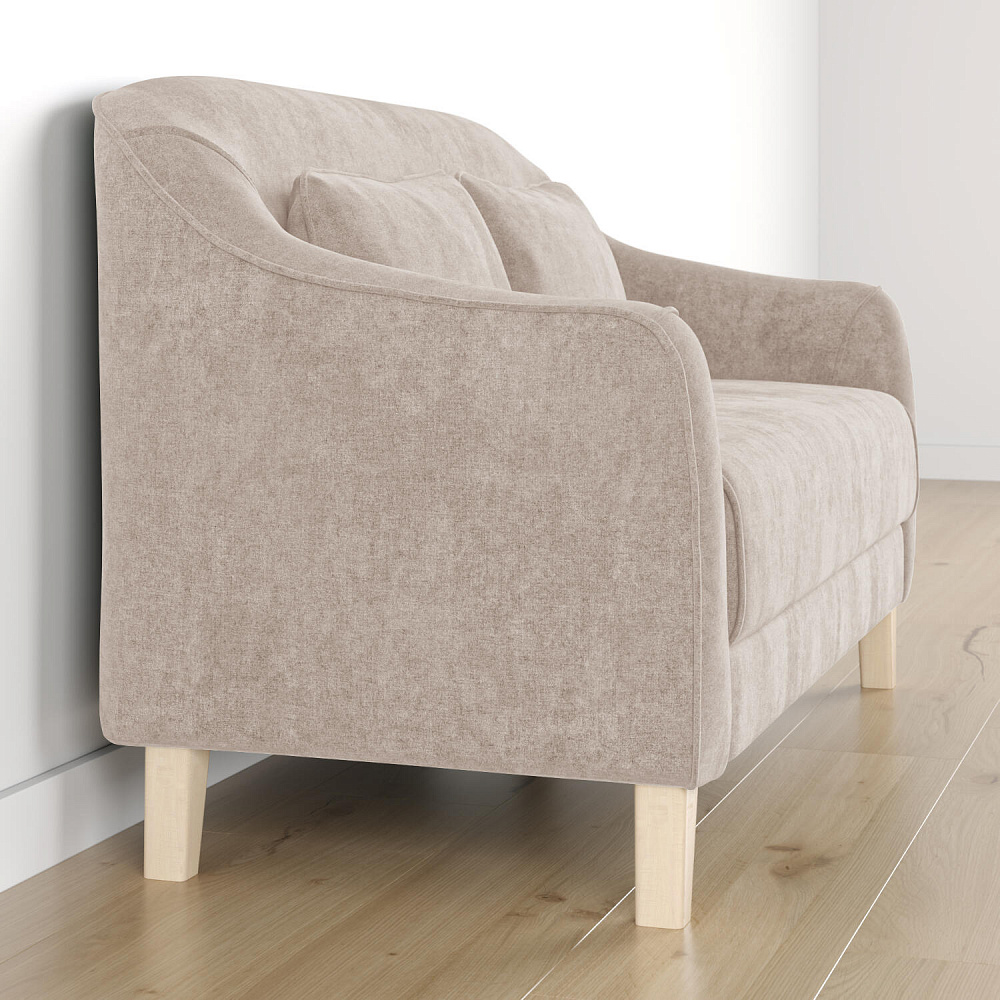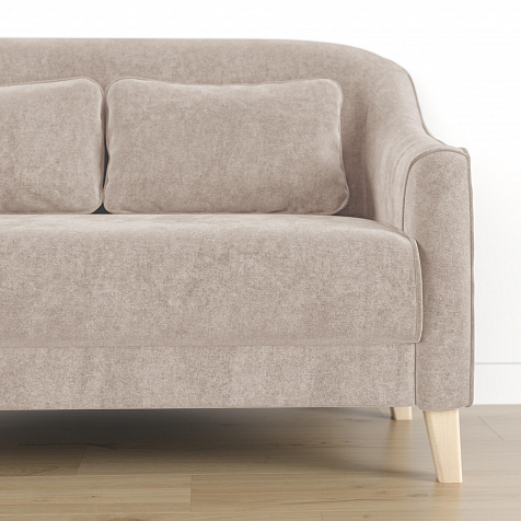 - Деревянные опоры. Высокие ножки из массива березы визуально облегчают конструкцию и открывают доступ к уборке пространства под диваном.