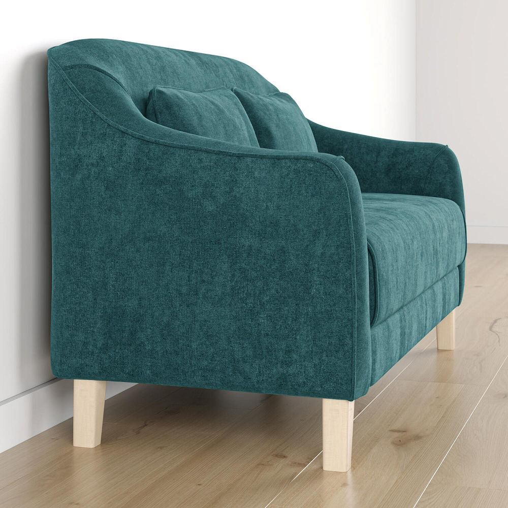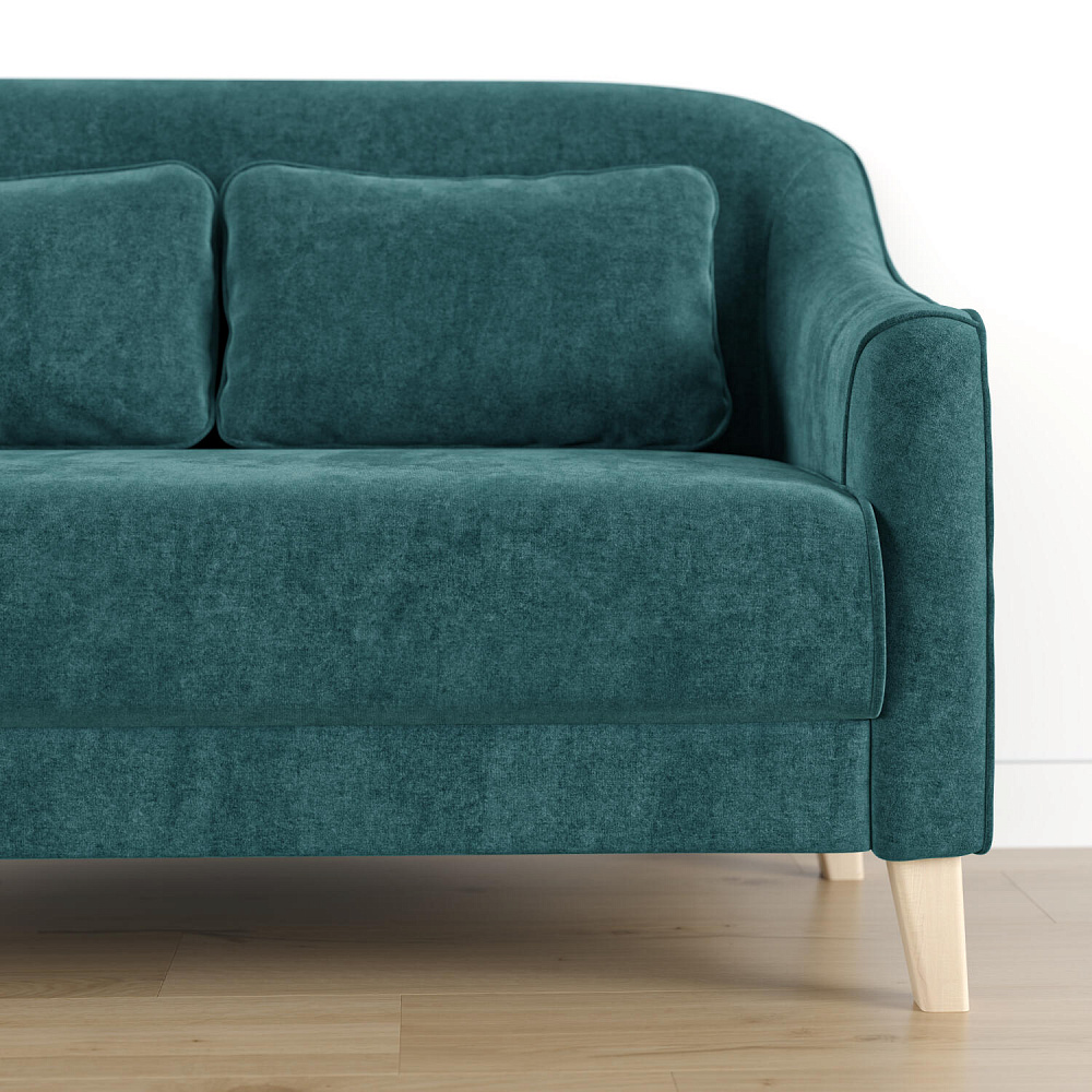 - Деревянные опоры. Высокие ножки из массива березы визуально облегчают конструкцию и открывают доступ к уборке пространства под диваном.