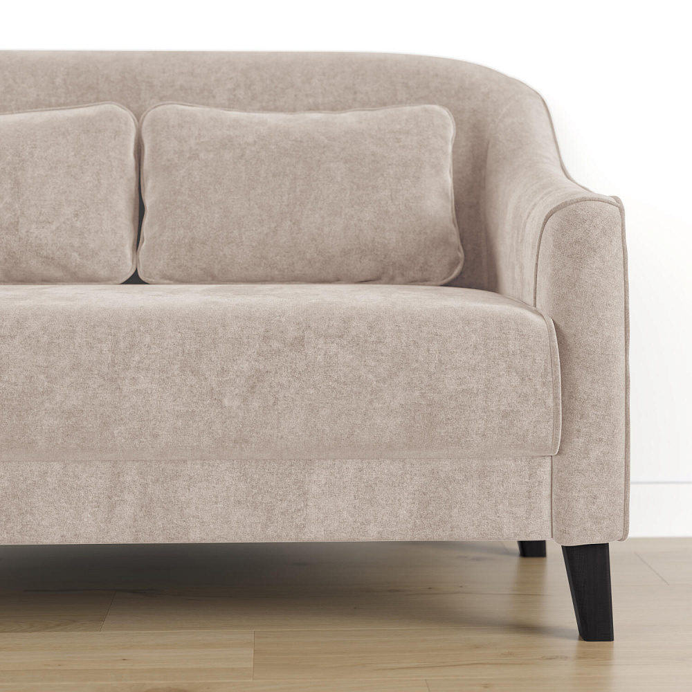 - Деревянные опоры. Высокие ножки из массива березы визуально облегчают конструкцию и открывают доступ к уборке пространства под диваном.