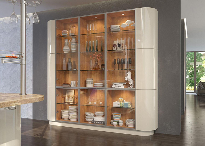 Гостиная 160. Элегантный шкаф для посуды с радиусными фасадами