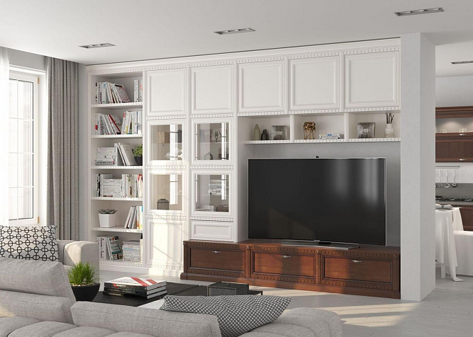 Гостиная 189. Итальянские стенки в бело-коричневом цвете, непревзойденная классика: фото и описание композиции