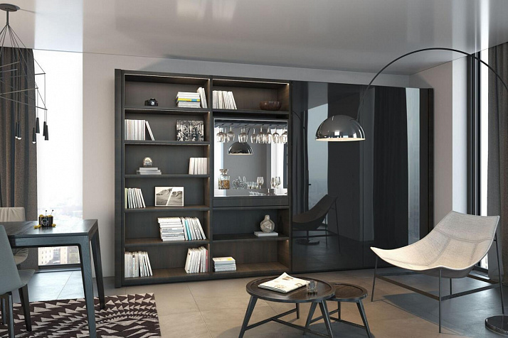 К подбору мебели для гостиной следует отнестись с должным вниманием, ведь это помещение буквально создано для демонстрации вкуса, достатка и статуса своих хозяев. Использование черного цвета в интерьере гостиной — достаточно смелый шаг, на который решится не каждый. Однако черному нельзя отказать в таинственной глубине и сдержанной роскоши. Тем, кто не боится смелых дизайнерских решений, предлагаем рассмотреть вариант гостиной с черной мебелью (стенкой), реализованный опытными специалистами Mr.Doors.