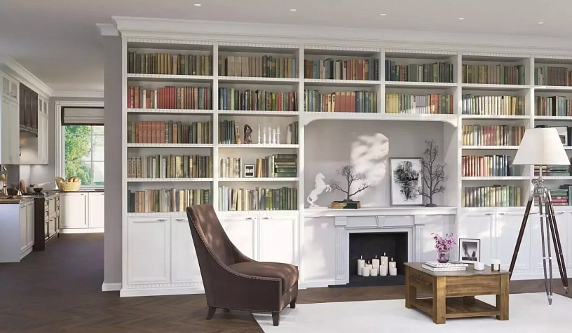 Купить белую библиотеку для гостиной.