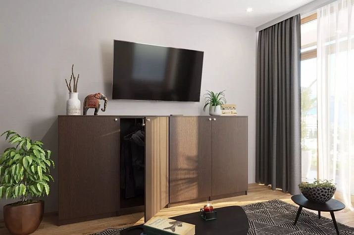 Для удобного хранения вещей не всегда нужно приобретать высокие шкафы. Их можно компактно разместить в небольшой системе хранения, которая также может быть использована для других целей.