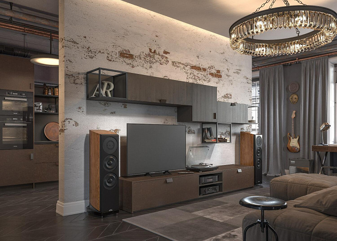 Корпусные элементы изготовлены из ламинированной плиты в декоре «Трюфель».