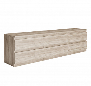 Корпусные элементы, полки и фасады из ламинированной плиты в декоре «Дуб Термо».