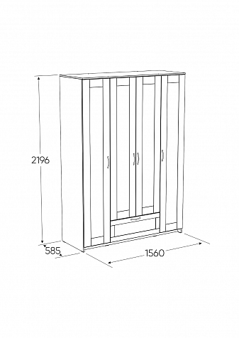 Шкаф Сириус 4 двери и 1 ящик 156х59х220 (белый)