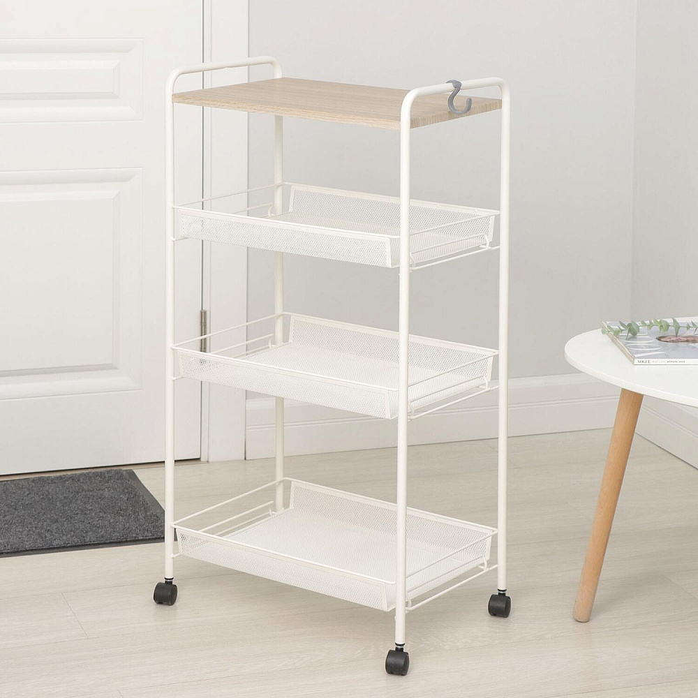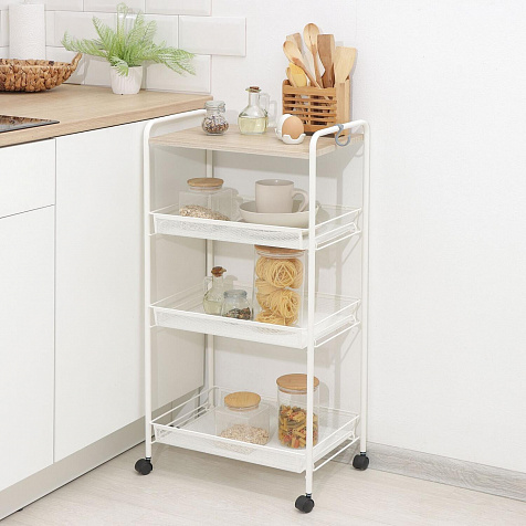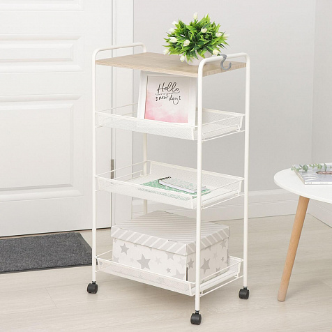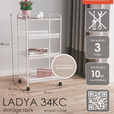 Этажерка Ладья 34 КС со столиком под дерево (белый) 45х30хh88см