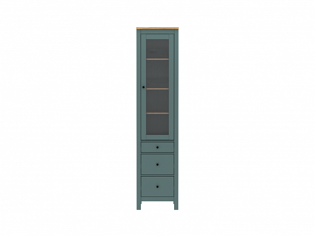 Шкаф с витриной САГА 50 тёмно-бирюзовый/ясень