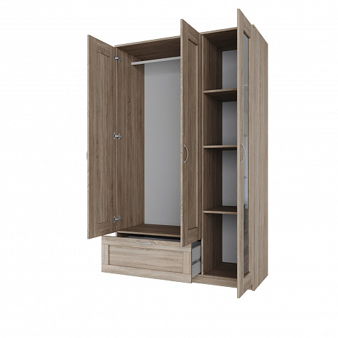 Шкаф комбинированный 3 двери (1 зеркало) и 1 ящик СИРИУС (сонома)