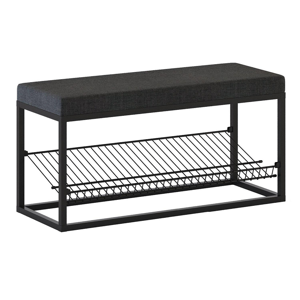 Пуф с полкой под обувь (Черный муар, ткань (Текна 9))