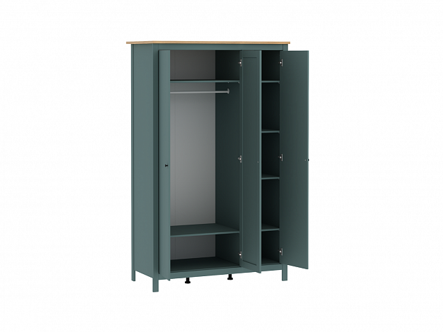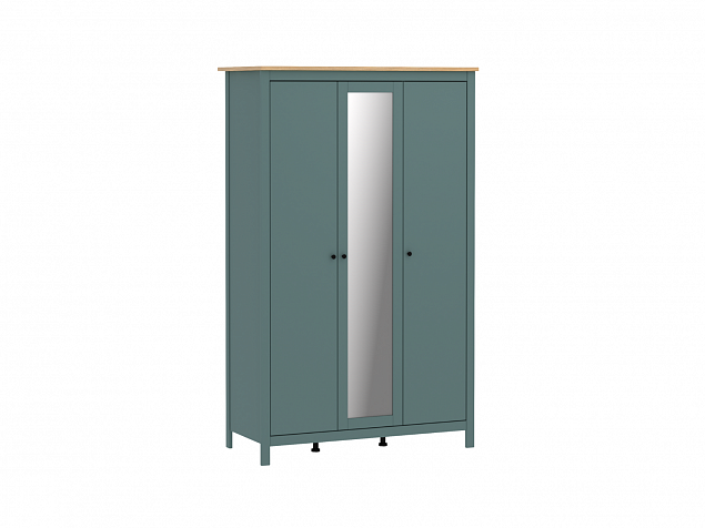 Шкаф САГА 3 двери с зеркалом темно-бирюзовый/ясень