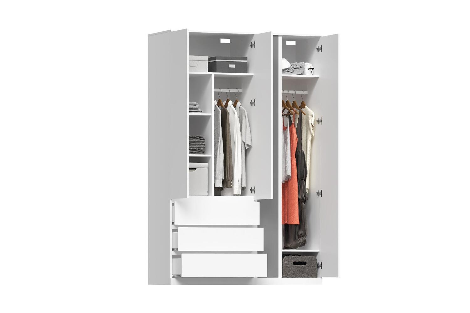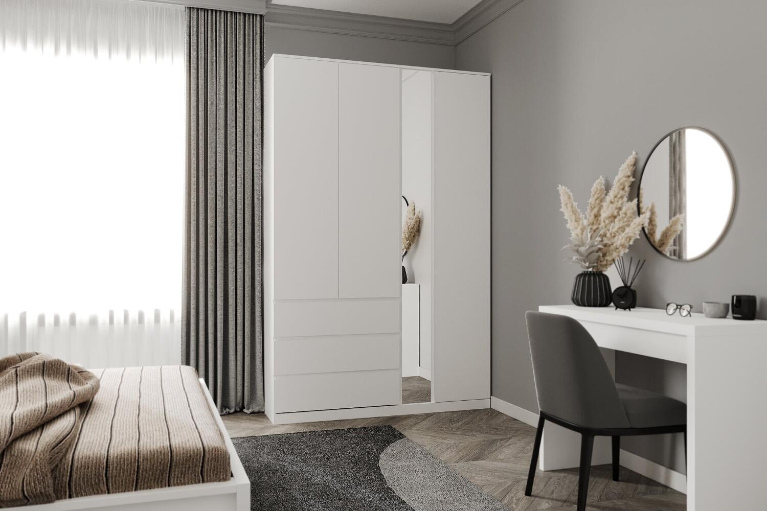 Шкаф СИРИУС 4 двери и 1 ящик 156х59х220 с 2 зеркалами (белый)