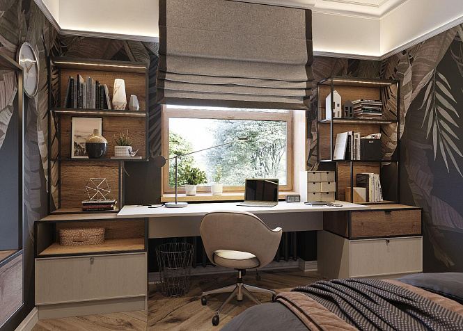 Как вы видите, разместить мебель для кабинета можно где угодно, включая спальню. Более того, ее можно дополнить и другими элементами по вашему желанию, так, что вместе они будут составлять единое стилевое решение.
