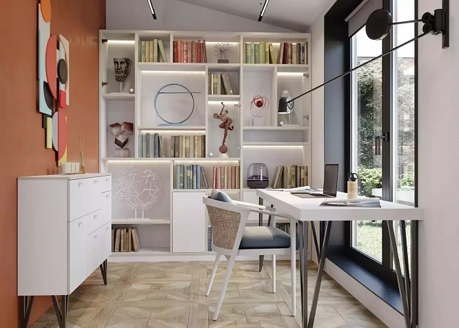 Приобрести комплект светлой мебели для кабинета можно у нас в интернет-магазине. Есть бесплатная услуга - вызов замерщика. Он снимет размер помещения. Потом, учитывая габариты комнаты, мы создадим мебель по индивидуальным размерам. Сборка мебели осуществляется нашими сотрудниками.
