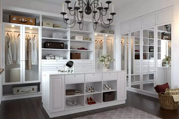 Гардеробная в классическом стиле подойдёт для организации системы хранения вещей в частном доме или большой городской квартире. ;