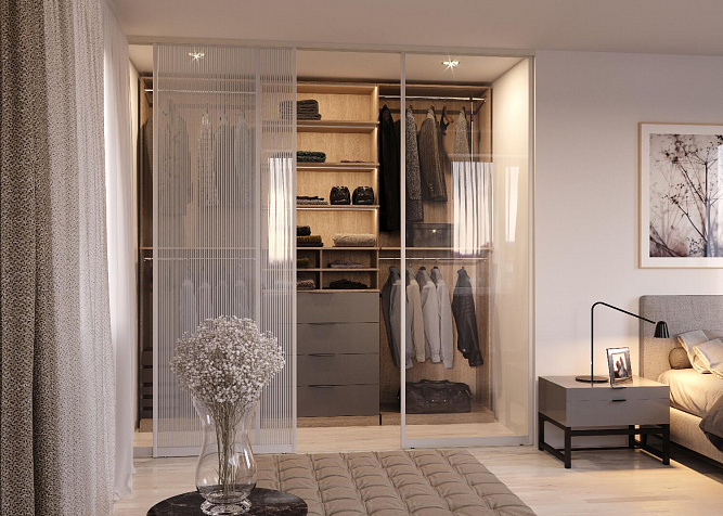 Гардеробная за раздвижными дверями системы Visio-V — эргономичный, удобный и элегантный вариант организации гардероба. Даже небольшая гардеробная делает помещение особенным, будь то спальня или отведенный под конструкцию уголок коридора или прихожей. Гардеробные Mr.Doors — это актуальные стилистические решения, превосходные материалы и современные технологии, позволяющие создавать отлично организованные и высокофункциональные системы хранения.