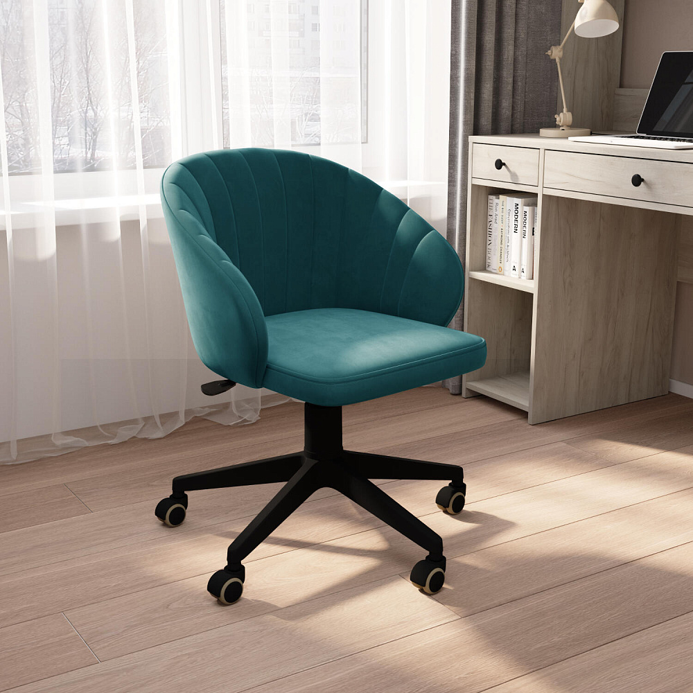 Кресло «Себастьян» — элегантная модель для дома, которая станет центром притяжения любого рабочего места. Модель отличается скругленной спинкой, плавно переходящей в подлокотники. Глубокое и ровное сиденье поможет комфортно разместиться за рабочим местом. Обивка выполнена из мягкого велюра с элегантным блеском. Кресло легко регулируется по высоте с помощью ручки под сиденьем. Модель подойдет к интерьеру в стиле неоклассика.