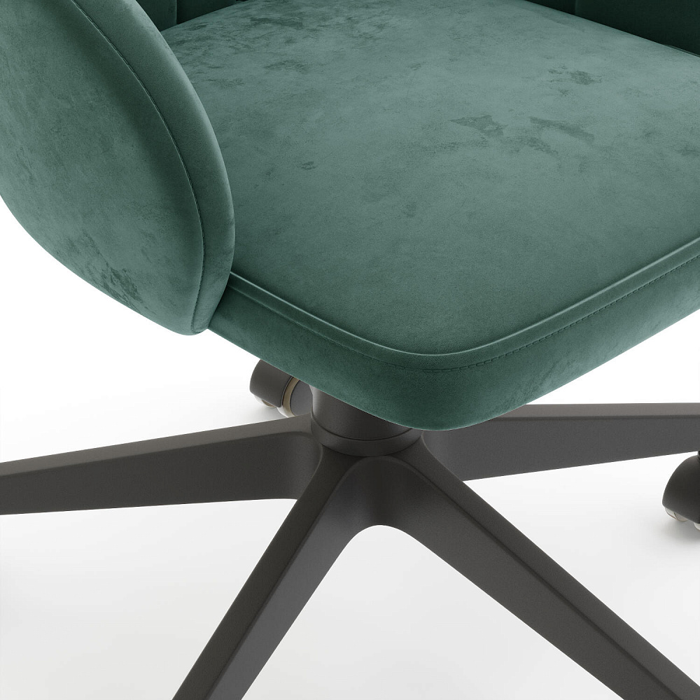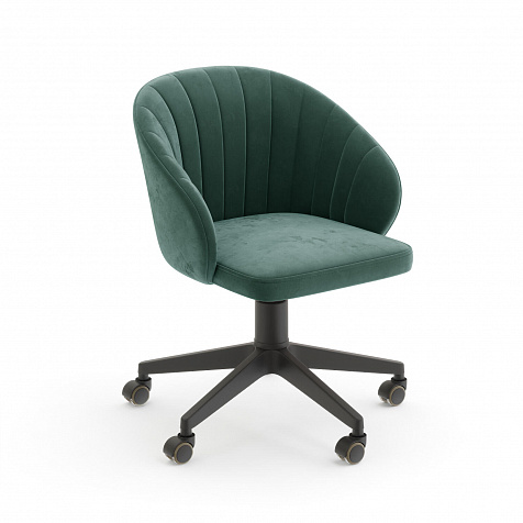 Кресло «Себастьян» — элегантная модель для дома, которая станет центром притяжения любого рабочего места. Модель отличается скругленной спинкой, плавно переходящей в подлокотники. Глубокое и ровное сиденье поможет комфортно разместиться за рабочим местом. Обивка выполнена из мягкого велюра с элегантным блеском. Кресло легко регулируется по высоте с помощью ручки под сиденьем. Модель подойдет к интерьеру в стиле неоклассика.