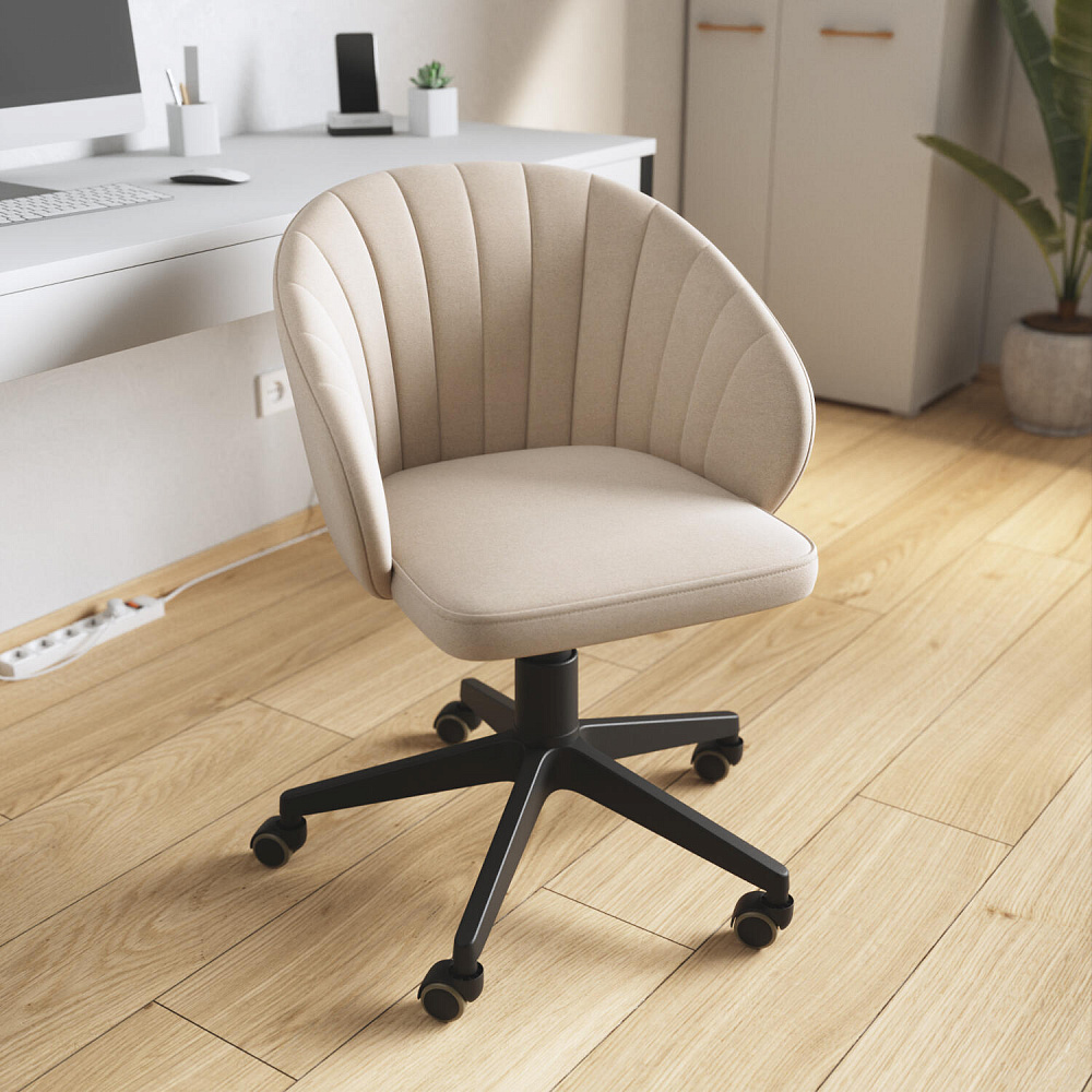 Кресло «Себастьян» — элегантная модель для дома, которая станет центром притяжения любого рабочего места. Модель отличается скругленной спинкой, плавно переходящей в подлокотники. Глубокое и ровное сиденье поможет комфортно разместиться за рабочим местом. Обивка выполнена из велюра с приятной матовой фактурой. Кресло легко регулируется по высоте с помощью ручки под сиденьем. Модель подойдет к интерьеру в стиле неоклассика.