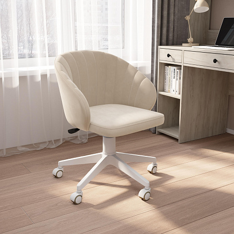 Кресло «Себастьян» — элегантная модель для дома, которая станет центром притяжения любого рабочего места. Модель отличается скругленной спинкой, плавно переходящей в подлокотники. Глубокое и ровное сиденье поможет комфортно разместиться за рабочим местом. Обивка выполнена из мягкого велюра с элегантным блеском. Кресло легко регулируется по высоте с помощью ручки под сиденьем. Модель подойдет к интерьеру в стиле неоклассика.