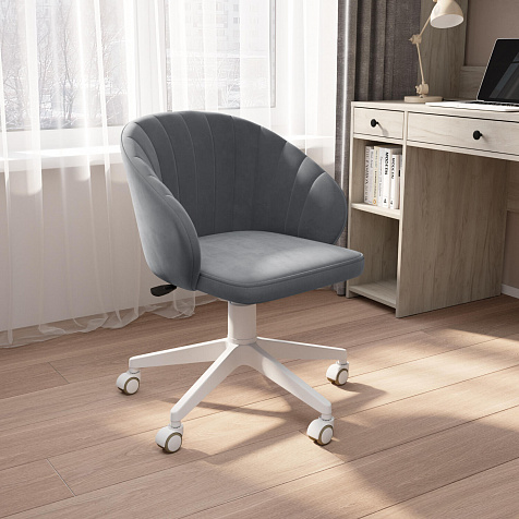 Кресло «Себастьян» — элегантная модель для дома, которая станет центром притяжения любого рабочего места. Модель отличается скругленной спинкой, плавно переходящей в подлокотники. Глубокое и ровное сиденье поможет комфортно разместиться за рабочим местом. Обивка выполнена из мягкого велюра с элегантным блеском. Кресло легко регулируется по высоте с помощью ручки под сиденьем. Модель подойдет к интерьеру в стиле неоклассика.
