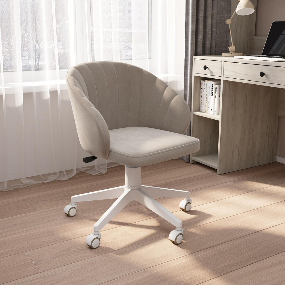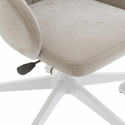 Кресло «Себастьян» — элегантная модель для дома, которая станет центром притяжения любого рабочего места. Модель отличается скругленной спинкой, плавно переходящей в подлокотники. Глубокое и ровное сиденье поможет комфортно разместиться за рабочим местом. Обивка выполнена из мягкого велюра с элегантным блеском. Кресло легко регулируется по высоте с помощью ручки под сиденьем. Модель подойдет к интерьеру в стиле неоклассика.