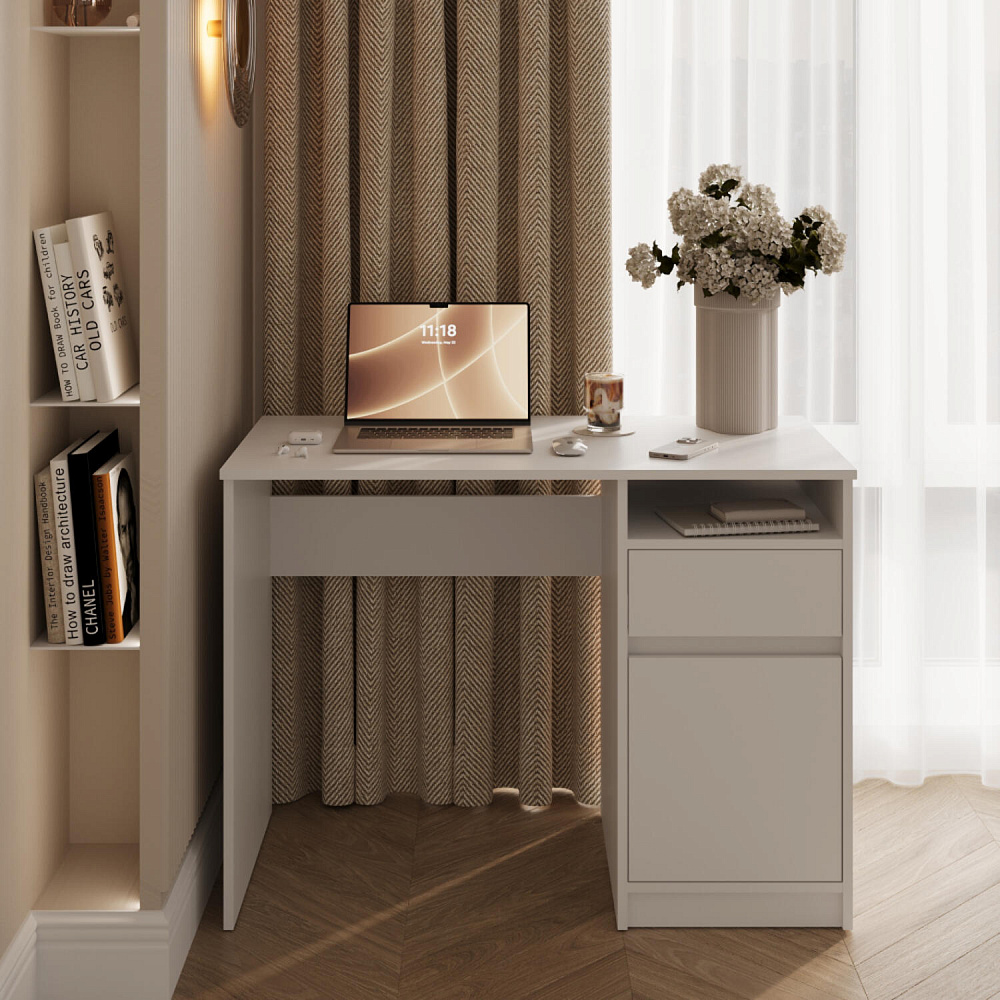 Компактный компьютерный стол «Кембридж» создан для небольшого пространства. Можно разместить ноутбук, канцелярские принадлежности, книги и мелкий декор. Модель оснащена ящиком, нишей и закрытым отделением для хранения различных вещей.