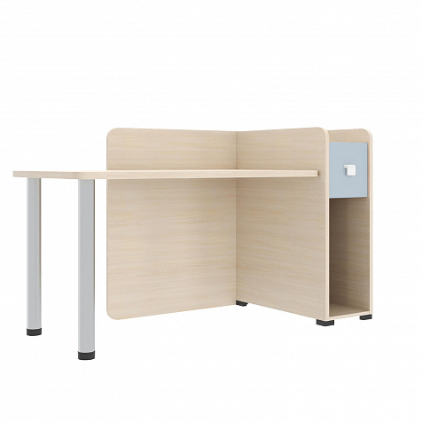 Тумба с нишей, ящиком и органайзером. Функциональная тумба имеет пространство для установки системного блока, над ней предусмотрен ящик, а за ящиком есть органайзер с двумя отделениями для канцелярских мелочей.