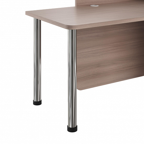 Хромированные опоры. С внешней стороны стола столешницу поддерживают две металлические регулируемые опоры, которые визуально облегчают конструкцию модели и позволяют устойчиво зафиксировать стол.