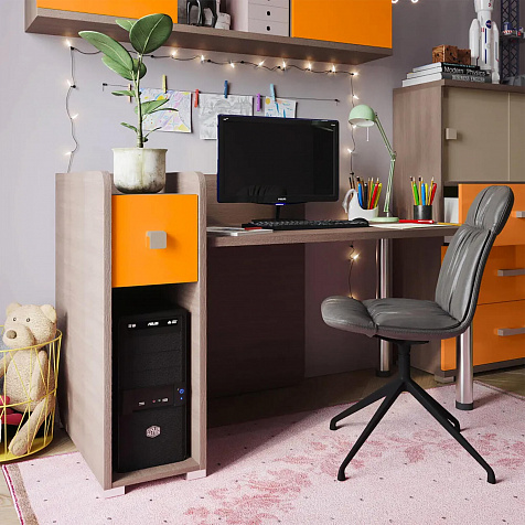 Компьютерный стол «Тиана» можно установить как в угол комнаты, так и к стене. Эргономичная модель с вместительной столешницей и продуманной системой хранения позволит организовать практичное рабочее место в детской или молодёжной комнате.
