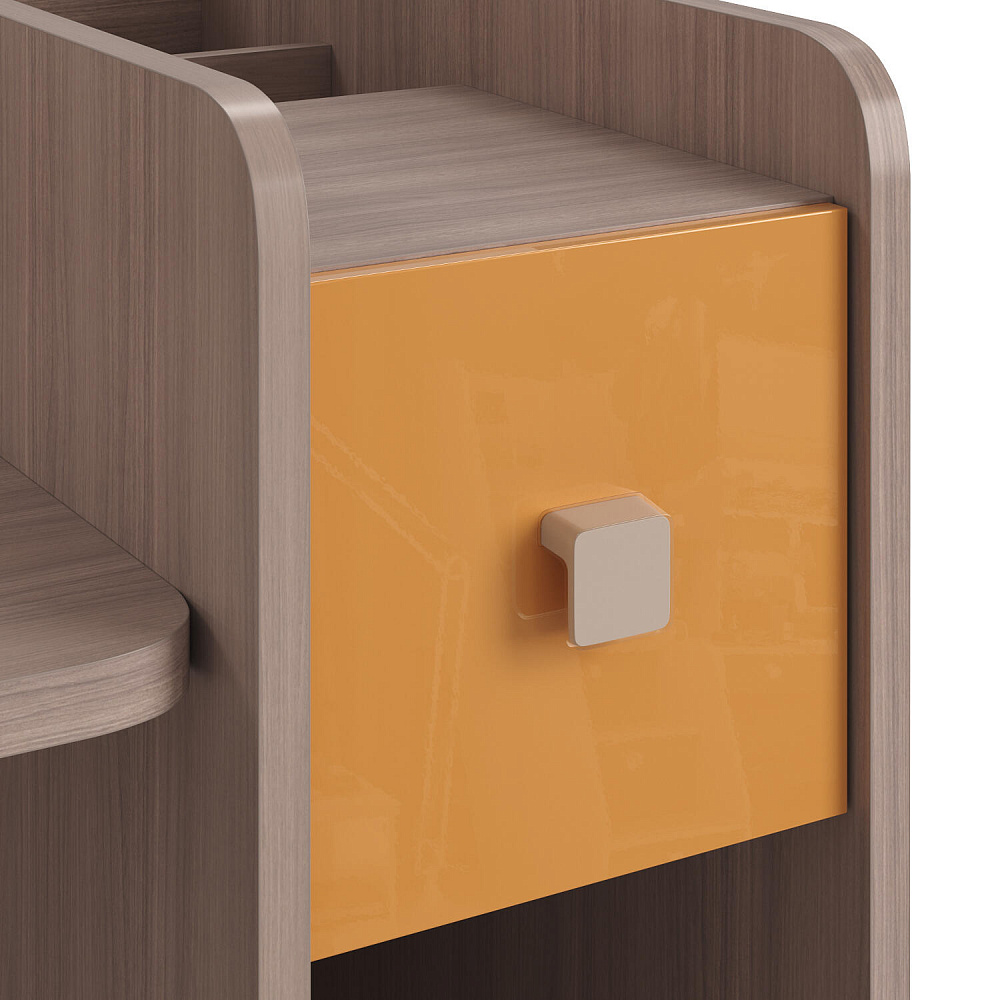Акриловый глянцевый фасад ящика. Фасад ящика окутан акриловым пластиком, который делает поверхность прочной, идеально гладкой и глянцевой с зеркальным блеском, добавляя в интерьер модные и динамичные акценты.
