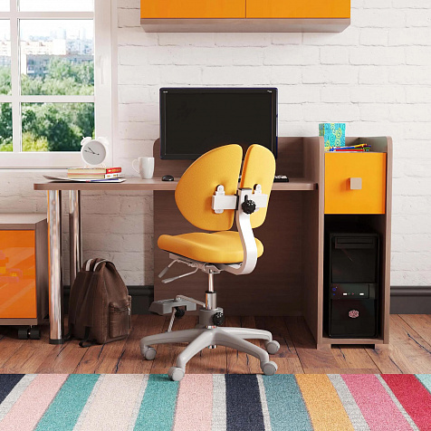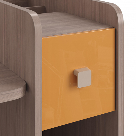 Просторная столешница с отверстием для проводов. Широкая столешница позволяет установить компьютер и разложить необходимые для учёбы и творчества материалы. В крышке стола предусмотрено отверстие для удобного вывода проводов.