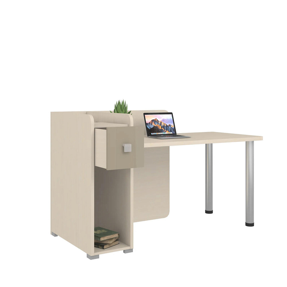 Компьютерный стол «Тиана» можно установить как в угол комнаты, так и к стене. Эргономичная модель с вместительной столешницей и продуманной системой хранения позволит организовать практичное рабочее место в детской или молодёжной комнате.
