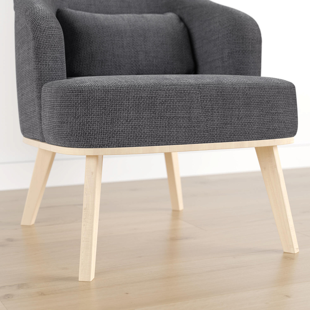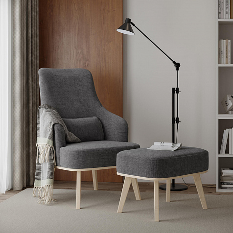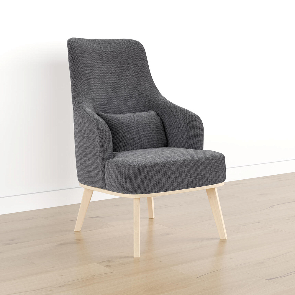 Кресло «Ноа» — минималистичная модель идеально подойдет для создания уютной зоны отдыха. Кресло в скандинавском стиле выделяется высокой спинкой, плавно перетекающей в подлокотники. Лаконичный образ завершает деревянное основание с тонкими опорами. Небольшая декоративная подушка поможет скорректировать глубину посадки для более комфортного отдыха.