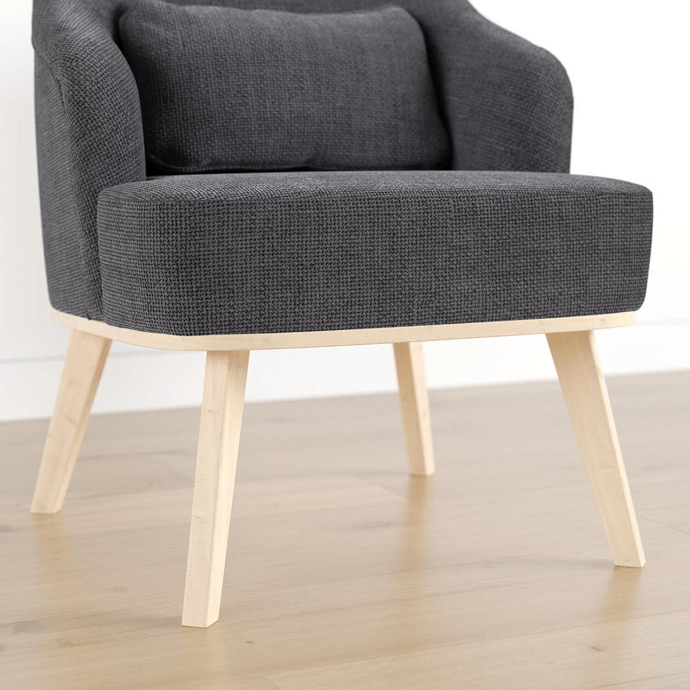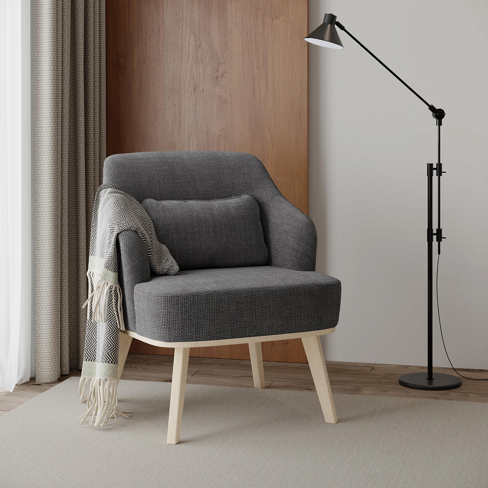 Кресло «Ноа» — минималистичная модель идеально подойдет для создания уютной зоны отдыха. Кресло в скандинавском стиле выделяется низкой спинкой, плавно перетекающей в подлокотники. Лаконичный образ завершает деревянное основание с тонкими опорами. Небольшая декоративная подушка поможет скорректировать глубину посадки для более комфортного отдыха.