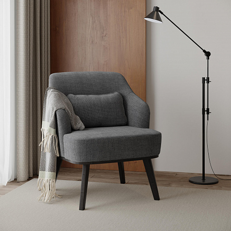 Кресло «Ноа» — минималистичная модель идеально подойдет для создания уютной зоны отдыха. Кресло в скандинавском стиле выделяется низкой спинкой, плавно перетекающей в подлокотники. Лаконичный образ завершает деревянное основание с тонкими опорами. Небольшая декоративная подушка поможет скорректировать глубину посадки для более комфортного отдыха.