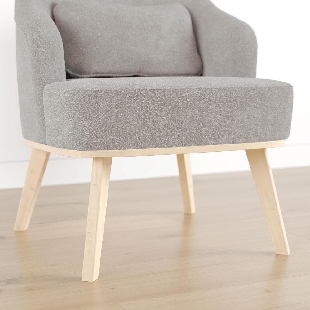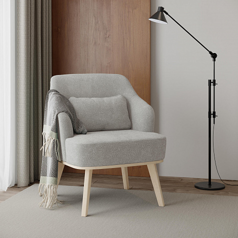Кресло «Ноа» — минималистичная модель идеально подойдет для создания уютной зоны отдыха. Кресло в скандинавском стиле выделяется низкой спинкой, плавно перетекающей в подлокотники. Лаконичный образ завершает деревянное основание с тонкими опорами. Небольшая декоративная подушка поможет скорректировать глубину посадки для более комфортного отдыха.