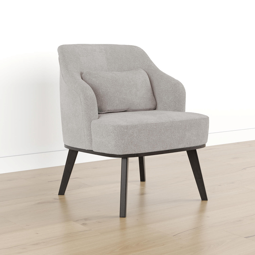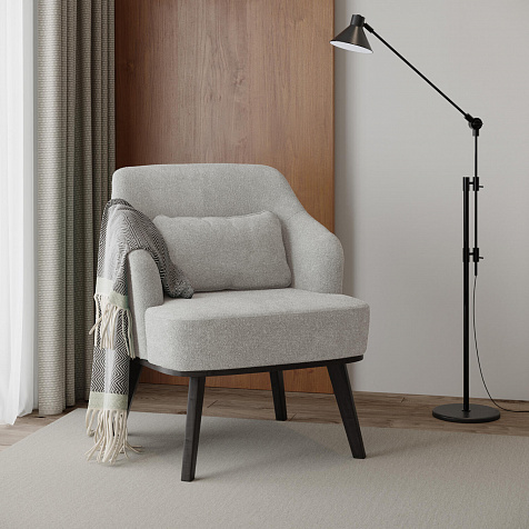 Кресло «Ноа» — минималистичная модель идеально подойдет для создания уютной зоны отдыха. Кресло в скандинавском стиле выделяется низкой спинкой, плавно перетекающей в подлокотники. Лаконичный образ завершает деревянное основание с тонкими опорами. Небольшая декоративная подушка поможет скорректировать глубину посадки для более комфортного отдыха.