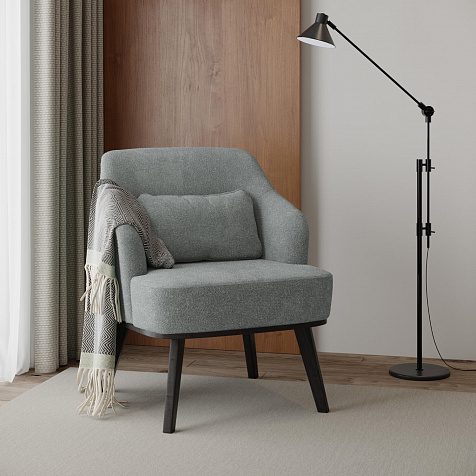 Кресло «Ноа» — минималистичная модель идеально подойдет для создания уютной зоны отдыха. Кресло в скандинавском стиле выделяется низкой спинкой, плавно перетекающей в подлокотники. Лаконичный образ завершает деревянное основание с тонкими опорами. Небольшая декоративная подушка поможет скорректировать глубину посадки для более комфортного отдыха.