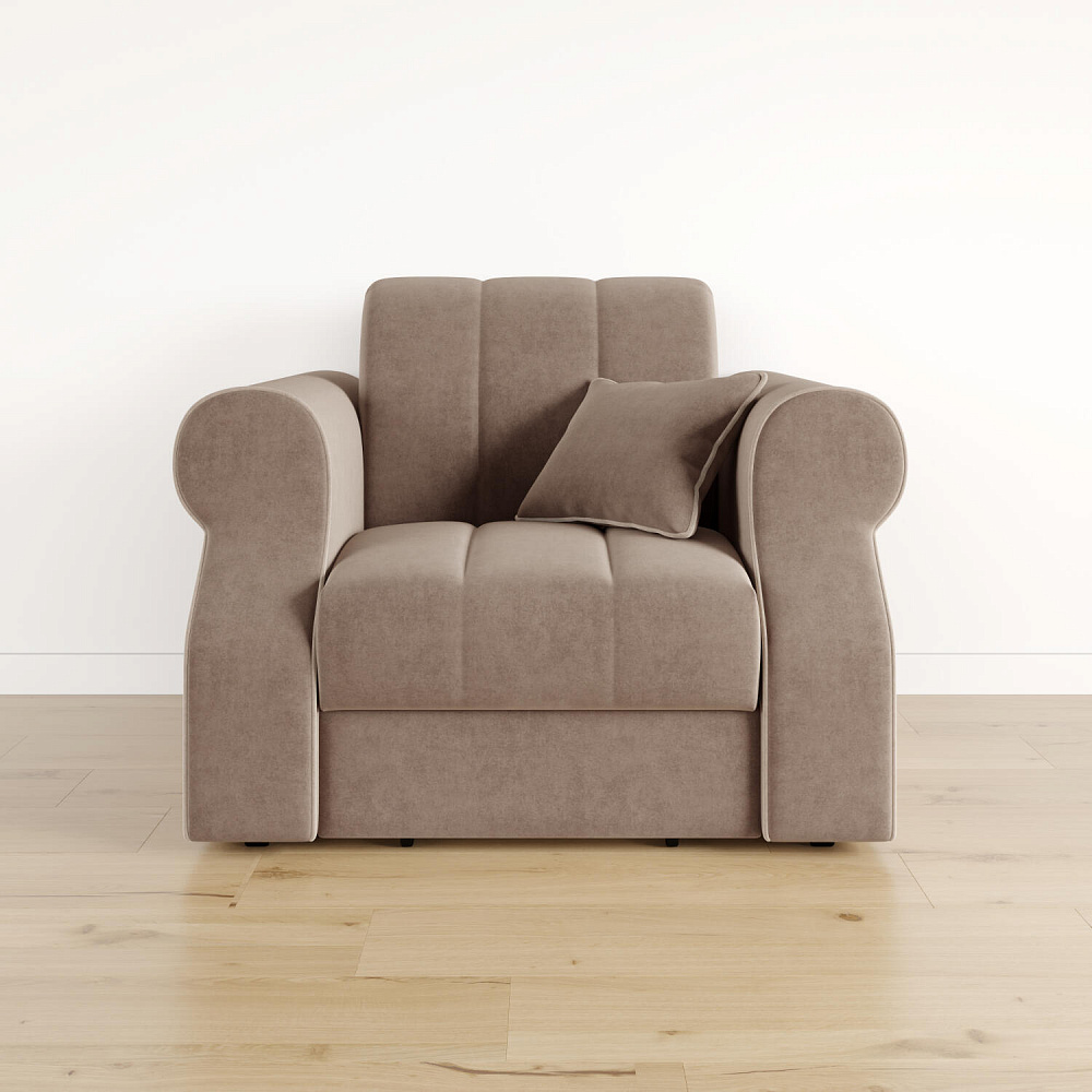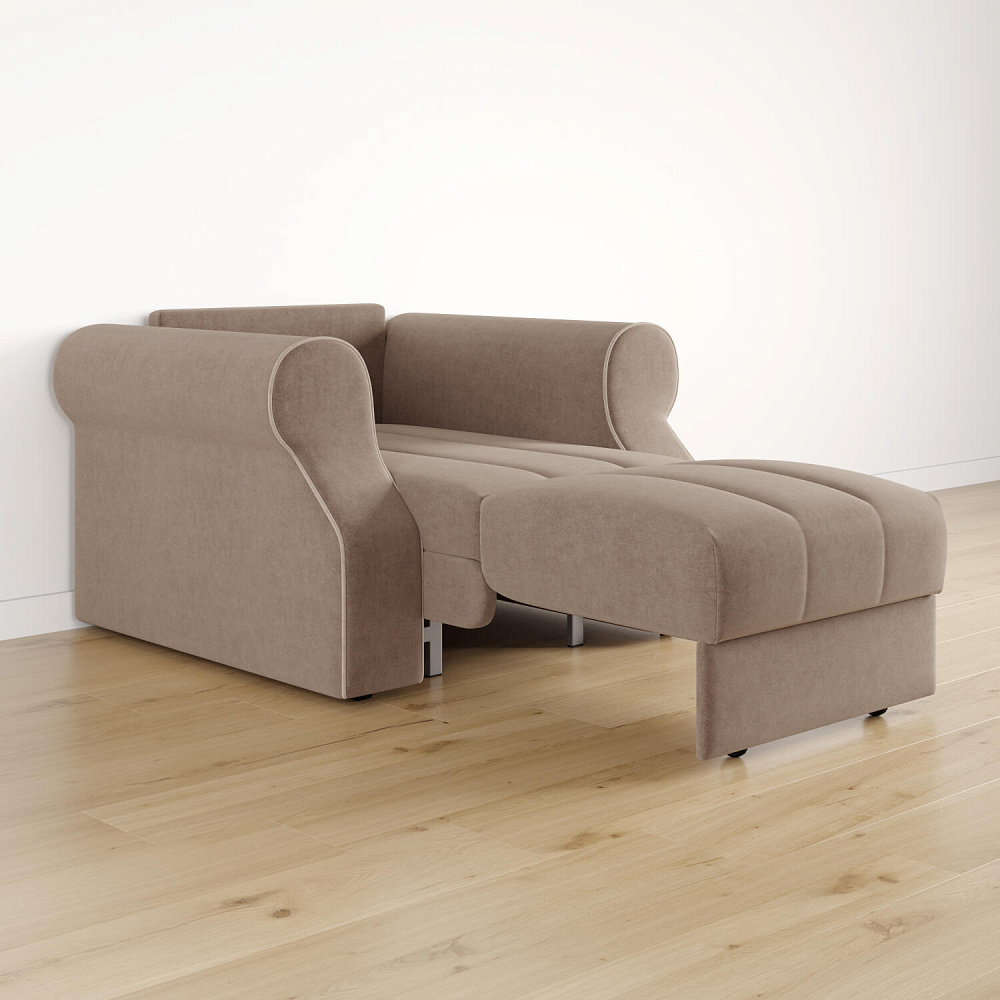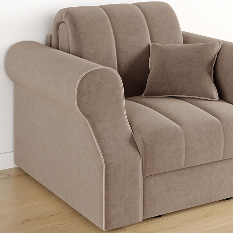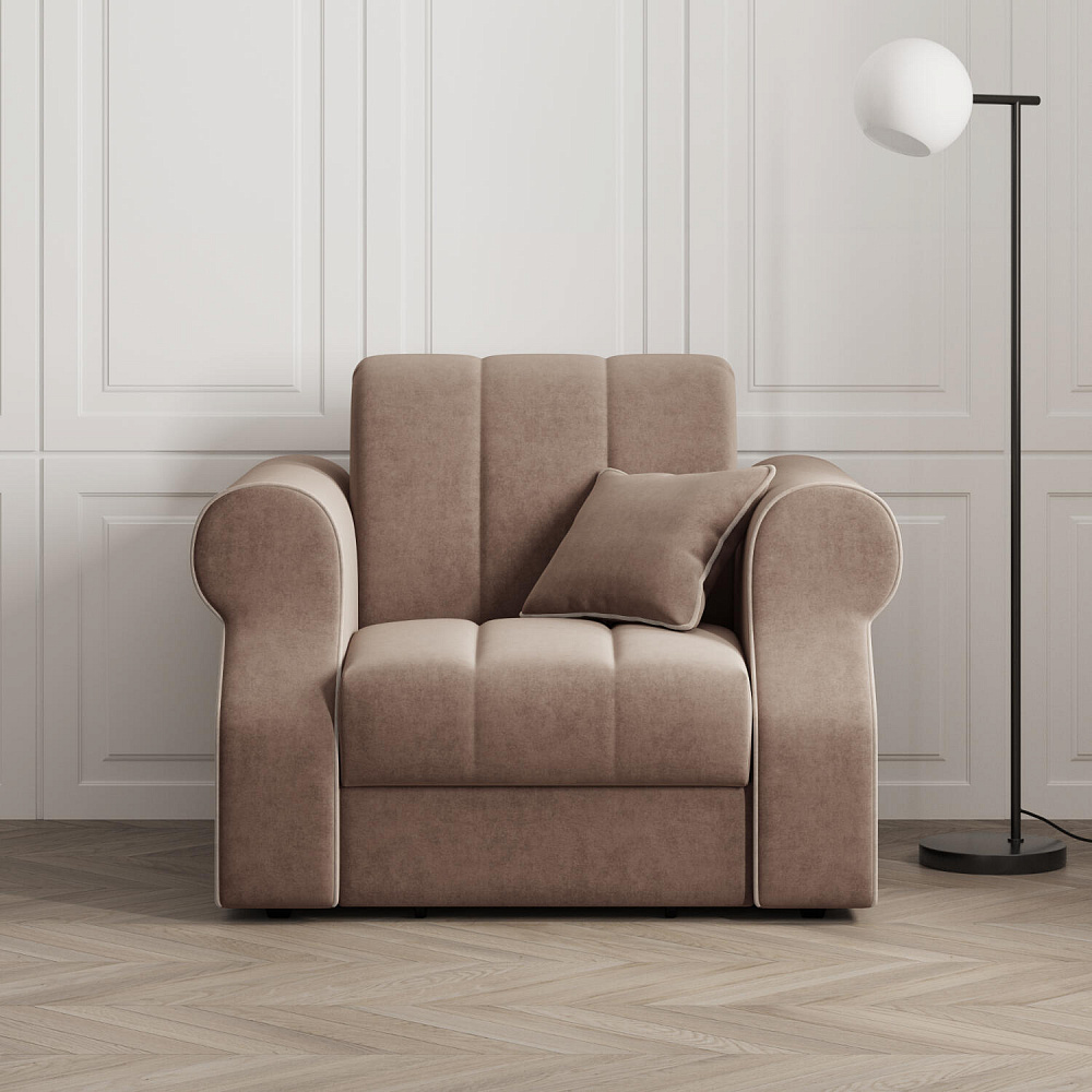 Кресло-кровать «Париж» придётся по душе ценителям стильной и функциональной мебели. Мягкое кресло с удобными подлокотниками и глубоким сиденьем позволит максимально расслабиться после тяжёлого дня. Благодаря простому в использовании механизму трансформации «Аккордеон», кресло легко превращается в односпальную кровать с ровным спальным местом. Плавность форм и лаконичность модели подчеркивают акцентные линии декоративного канта.