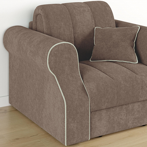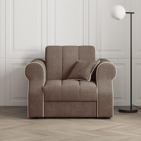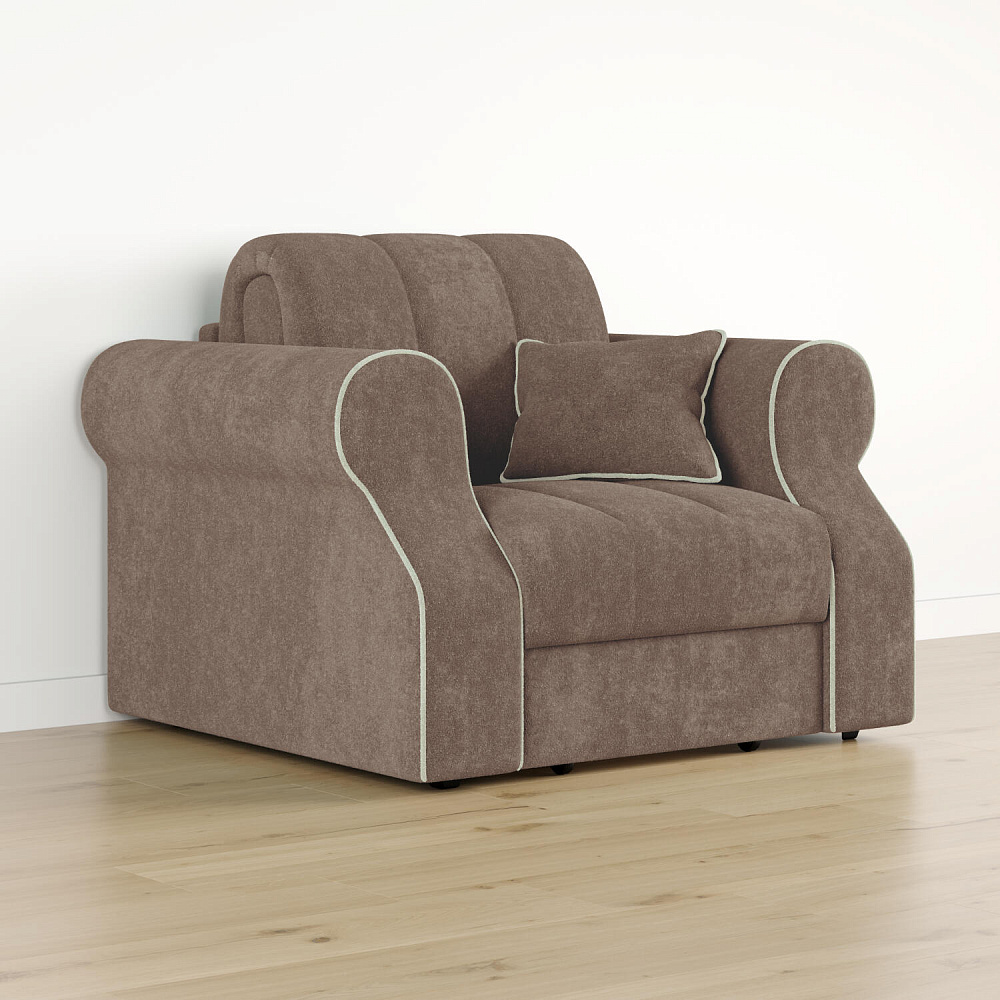 Кресло-кровать «Париж» придётся по душе ценителям стильной и функциональной мебели. Мягкое кресло с удобными подлокотниками и глубоким сиденьем позволит максимально расслабиться после тяжёлого дня. Благодаря простому в использовании механизму трансформации «Аккордеон», кресло легко превращается в односпальную кровать с ровным спальным местом. Плавность форм и лаконичность модели подчеркивают акцентные линии декоративного канта.