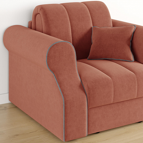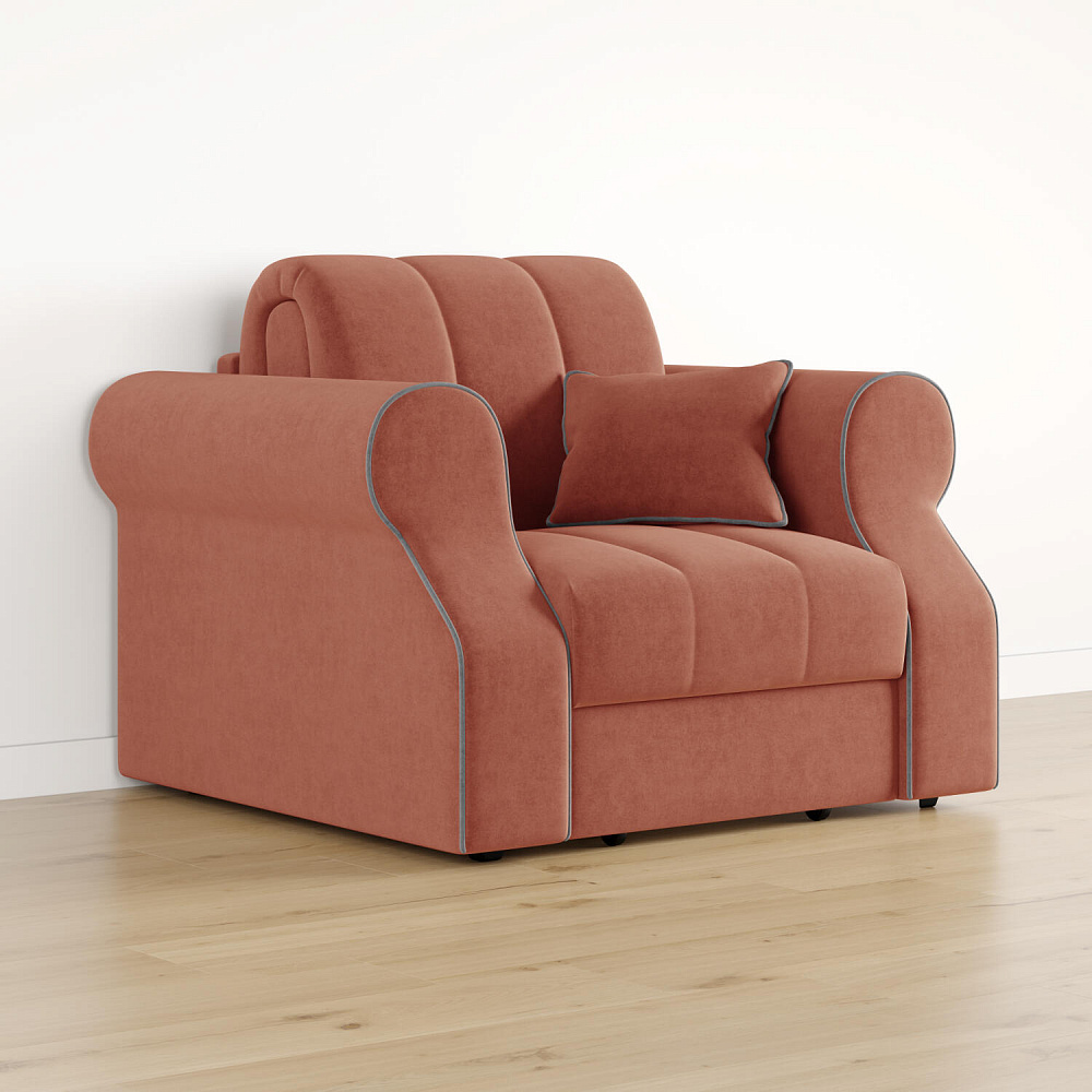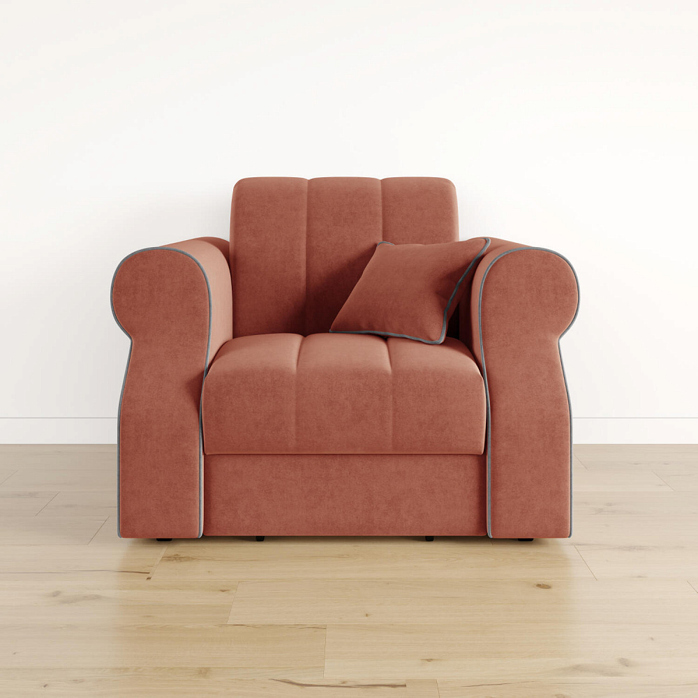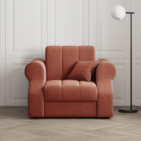 Кресло-кровать «Париж» придётся по душе ценителям стильной и функциональной мебели. Мягкое кресло с удобными подлокотниками и глубоким сиденьем позволит максимально расслабиться после тяжёлого дня. Благодаря простому в использовании механизму трансформации «Аккордеон», кресло легко превращается в односпальную кровать с ровным спальным местом. Плавность форм и лаконичность модели подчеркивают акцентные линии декоративного канта.