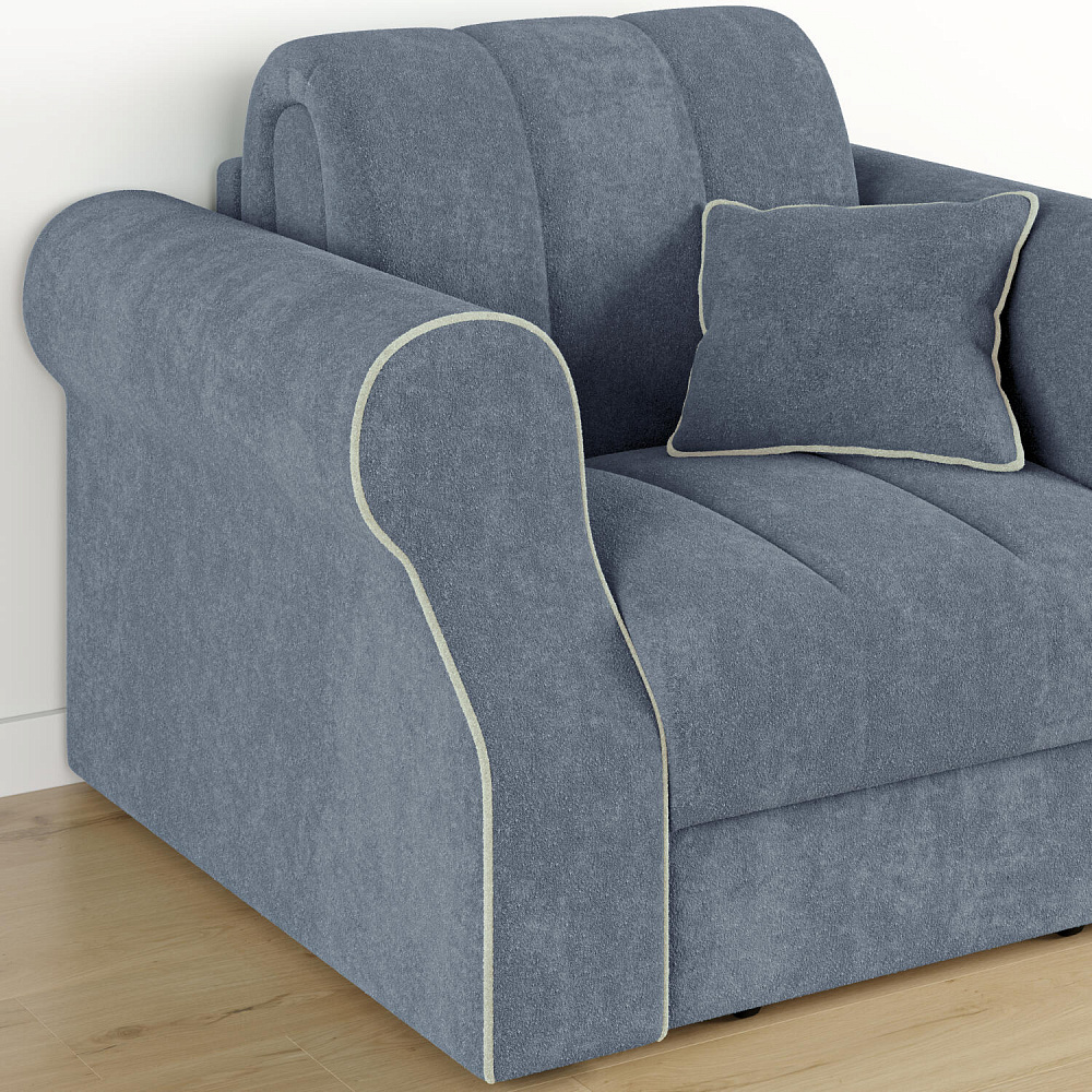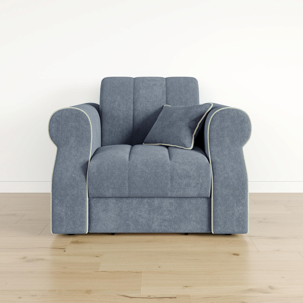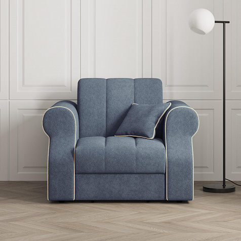 Кресло-кровать «Париж» придётся по душе ценителям стильной и функциональной мебели. Мягкое кресло с удобными подлокотниками и глубоким сиденьем позволит максимально расслабиться после тяжёлого дня. Благодаря простому в использовании механизму трансформации «Аккордеон», кресло легко превращается в односпальную кровать с ровным спальным местом. Плавность форм и лаконичность модели подчеркивают акцентные линии декоративного канта.