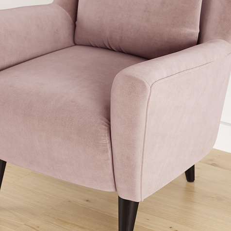 Удобное кресло «Дублин» с декоративной подушкой гармонично сочетается с особенностями любого интерьера. Дизайн модели — это единство плавных форм и линий, лаконичности и изысканности. Особый шарм обеспечивается за счёт вогнутой формы спинки и элегантных подлокотников, обеспечивающих высокий комфорт во время посадки. Благодаря высоким ножкам из натурального дерева, кресло словно парит в воздухе, в некоторой степени облегчая интерьер гостиной или спальни.