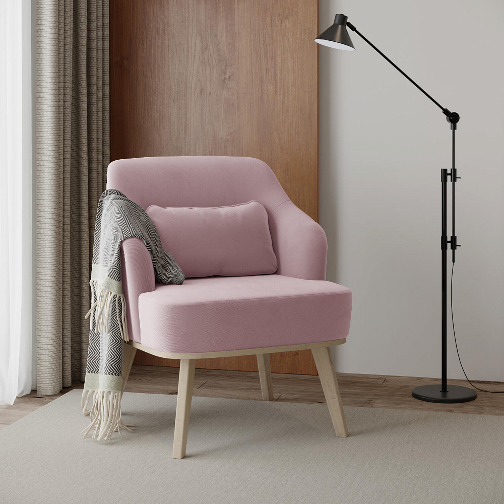 Кресло «Ноа» — минималистичная модель идеально подойдет для создания уютной зоны отдыха. Кресло в скандинавском стиле выделяется низкой спинкой, плавно перетекающей в подлокотники. Лаконичный образ завершает деревянное основание с тонкими опорами. Небольшая декоративная подушка поможет скорректировать глубину посадки для более комфортного отдыха.