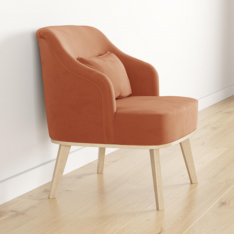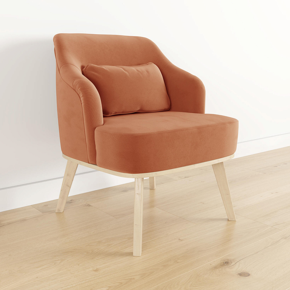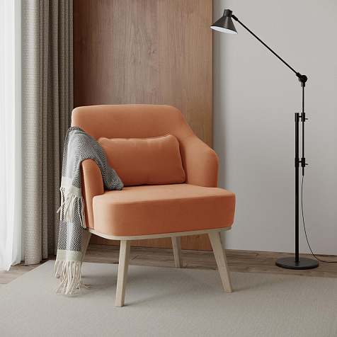 Кресло «Ноа» — минималистичная модель идеально подойдет для создания уютной зоны отдыха. Кресло в скандинавском стиле выделяется низкой спинкой, плавно перетекающей в подлокотники. Лаконичный образ завершает деревянное основание с тонкими опорами. Небольшая декоративная подушка поможет скорректировать глубину посадки для более комфортного отдыха.
