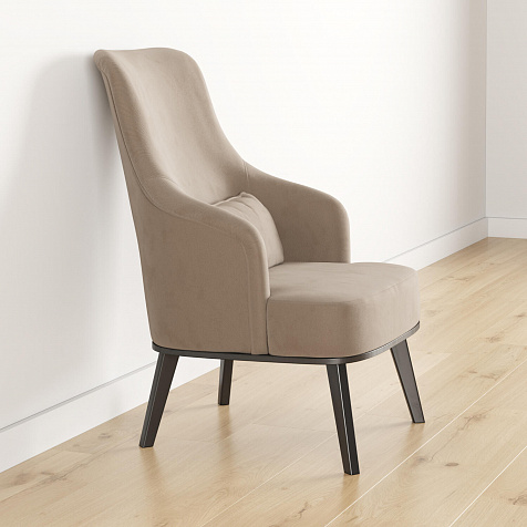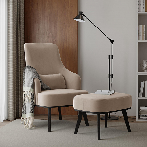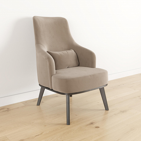 Кресло «Ноа» — минималистичная модель идеально подойдет для создания уютной зоны отдыха. Кресло в скандинавском стиле выделяется высокой спинкой, плавно перетекающей в подлокотники. Лаконичный образ завершает деревянное основание с тонкими опорами. Небольшая декоративная подушка поможет скорректировать глубину посадки для более комфортного отдыха.