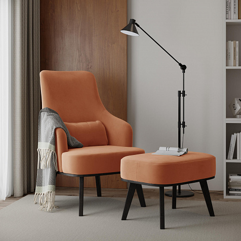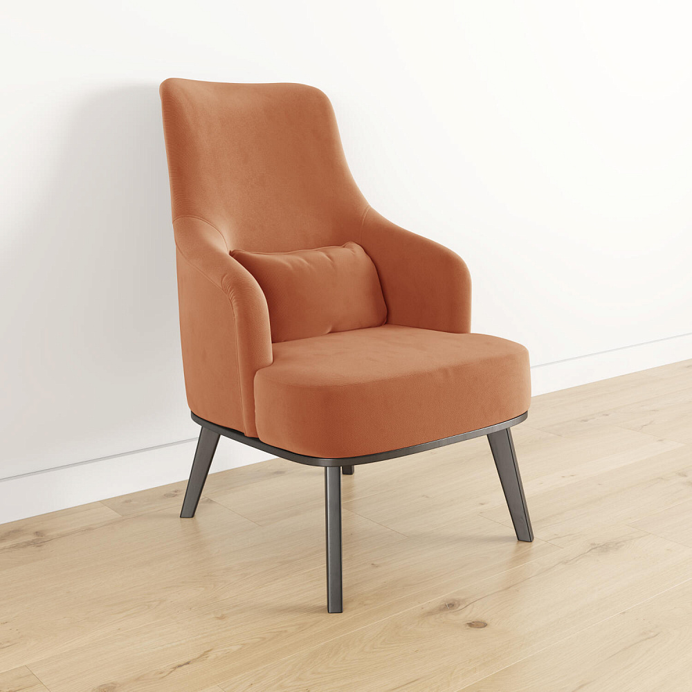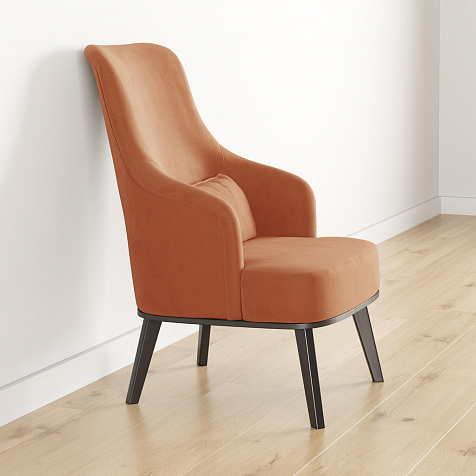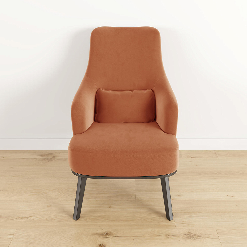 Кресло «Ноа» — минималистичная модель идеально подойдет для создания уютной зоны отдыха. Кресло в скандинавском стиле выделяется высокой спинкой, плавно перетекающей в подлокотники. Лаконичный образ завершает деревянное основание с тонкими опорами. Небольшая декоративная подушка поможет скорректировать глубину посадки для более комфортного отдыха.