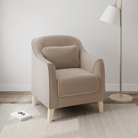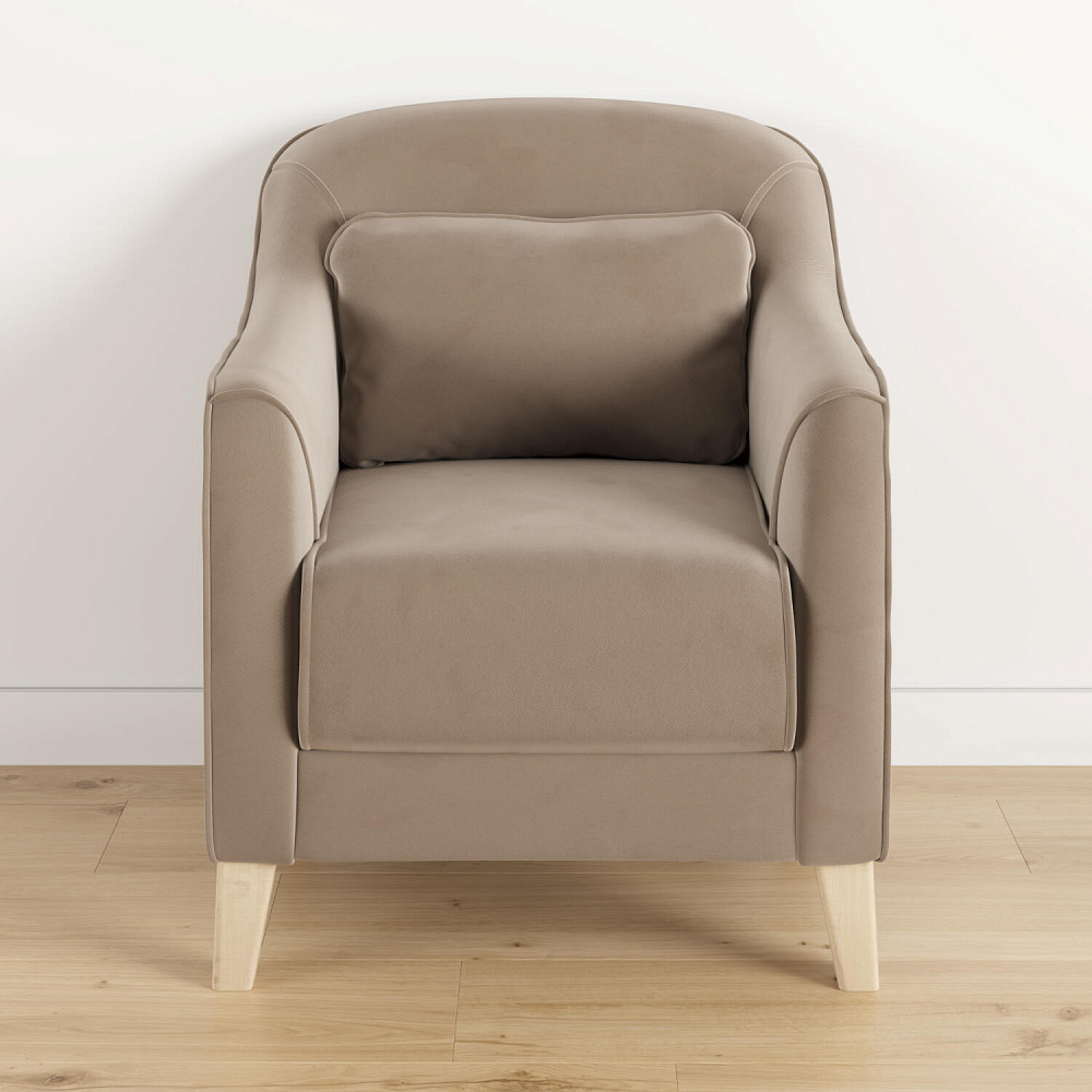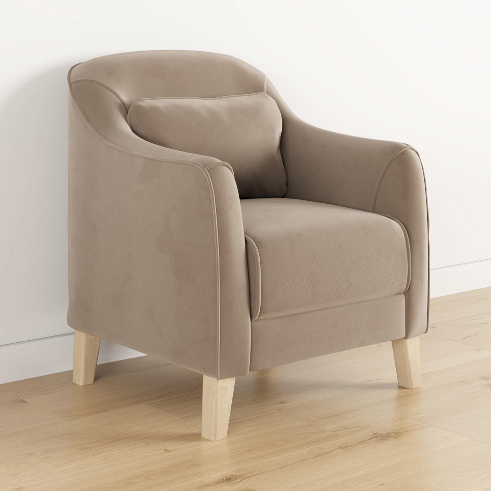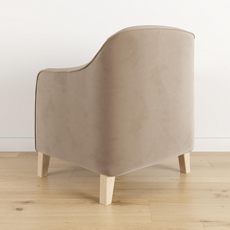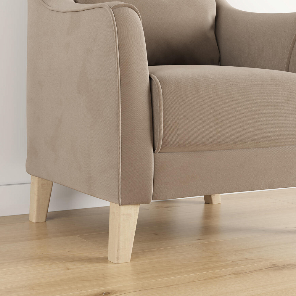 - Деревянные опоры. Высокие ножки из массива березы визуально облегчают конструкцию и открывают доступ к уборке пространства под креслом.